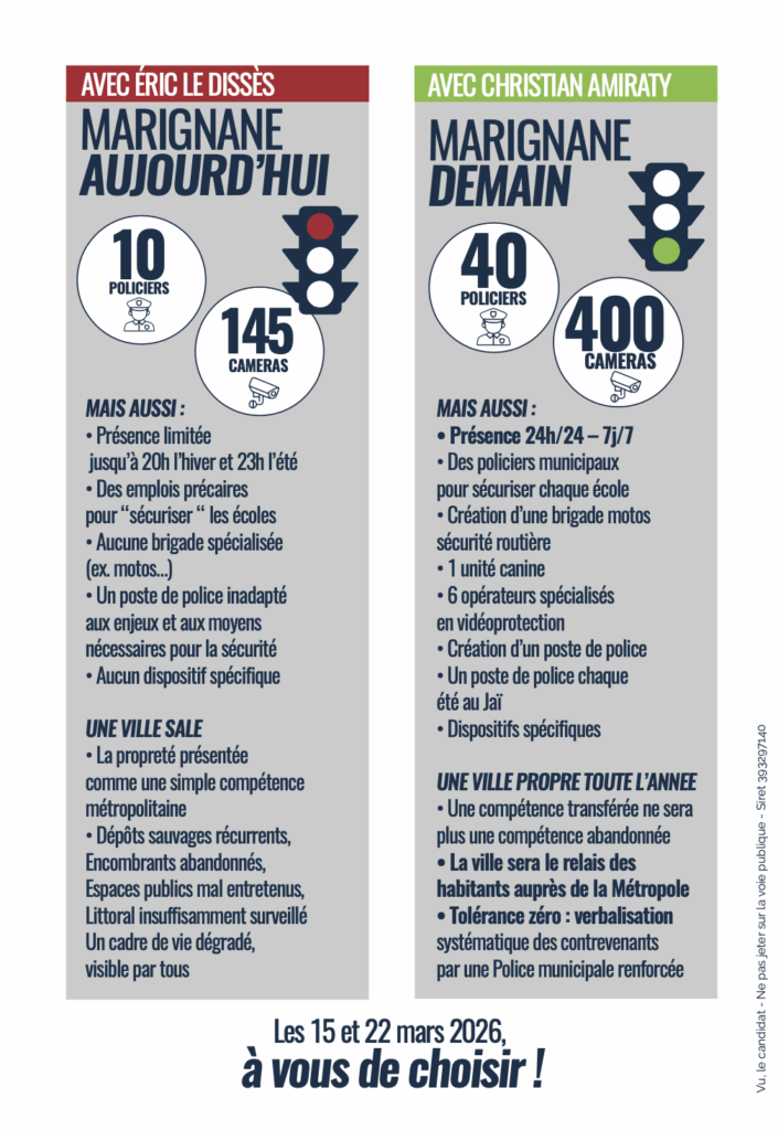 Pourquoi Marignane ne le serait-elle pas, alors qu’elle dispose des ressources nécessaires ?👉 Une vraie sécurité et zéro augmentation d’impôts : Christian Amiraty s’y engage.